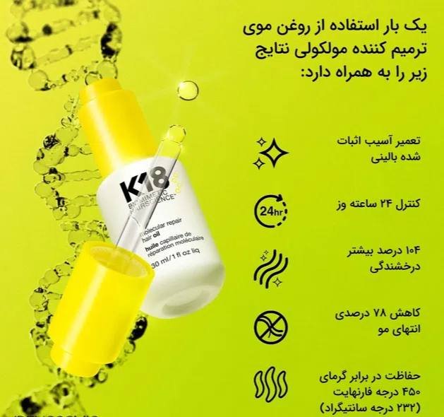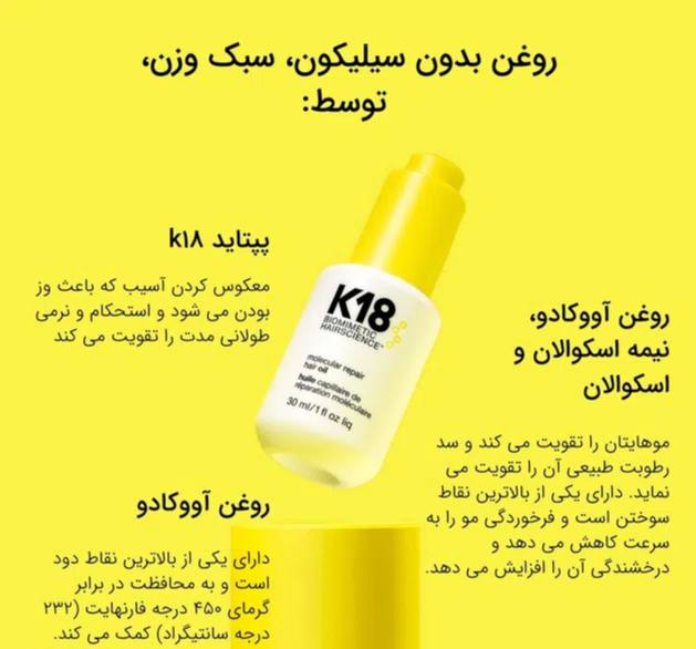 روغن مو ترمیم‌کننده قوی K18 محصولی انقلابی برای بازگرداندن سلامت و درخشندگی موهای آسیب‌دیده است. این روغن با فرمولاسیونی پیشرفته و منحصربه‌فرد، به عمق فیبر مو نفوذ کرده و آسیب‌های ناشی از رنگ، حرارت، و عوامل محیطی را ترمیم می‌کند. برخلاف محصولات معمولی، روغن K18 نه‌تنها ظاهری براق و نرم به موها می‌بخشد، بلکه به بازسازی ساختار مو در سطح مولکولی کمک می‌کند و ماندگاری طولانی‌مدت را تضمین می‌کند. با استفاده از این محصول، موهایتان به مرور قوی‌تر، سالم‌تر و لطیف‌تر می‌شوند و در برابر شکستگی و خشکی مقاومت بیشتری پیدا می‌کنند. مناسب برای انواع مو، از جمله موهای رنگ‌شده و آسیب‌دیده، روغن K18 انتخابی حرفه‌ای برای کسانی است که به دنبال مراقبتی عمیق و نتیجه‌ای بی‌نظیر هستند.