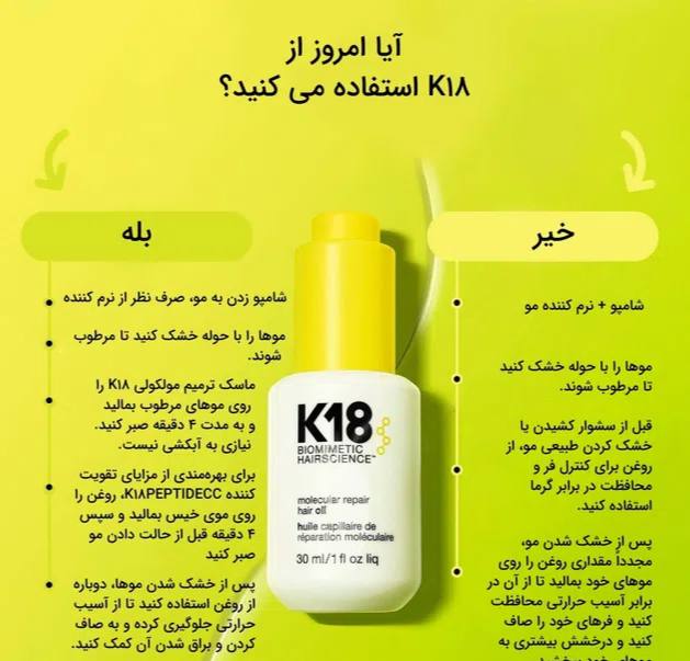 برای استفاده صحیح از روغن ترمیم کننده مو K18 بر روی موهای رنگ شده، مراحل زیر را دنبال کنید: