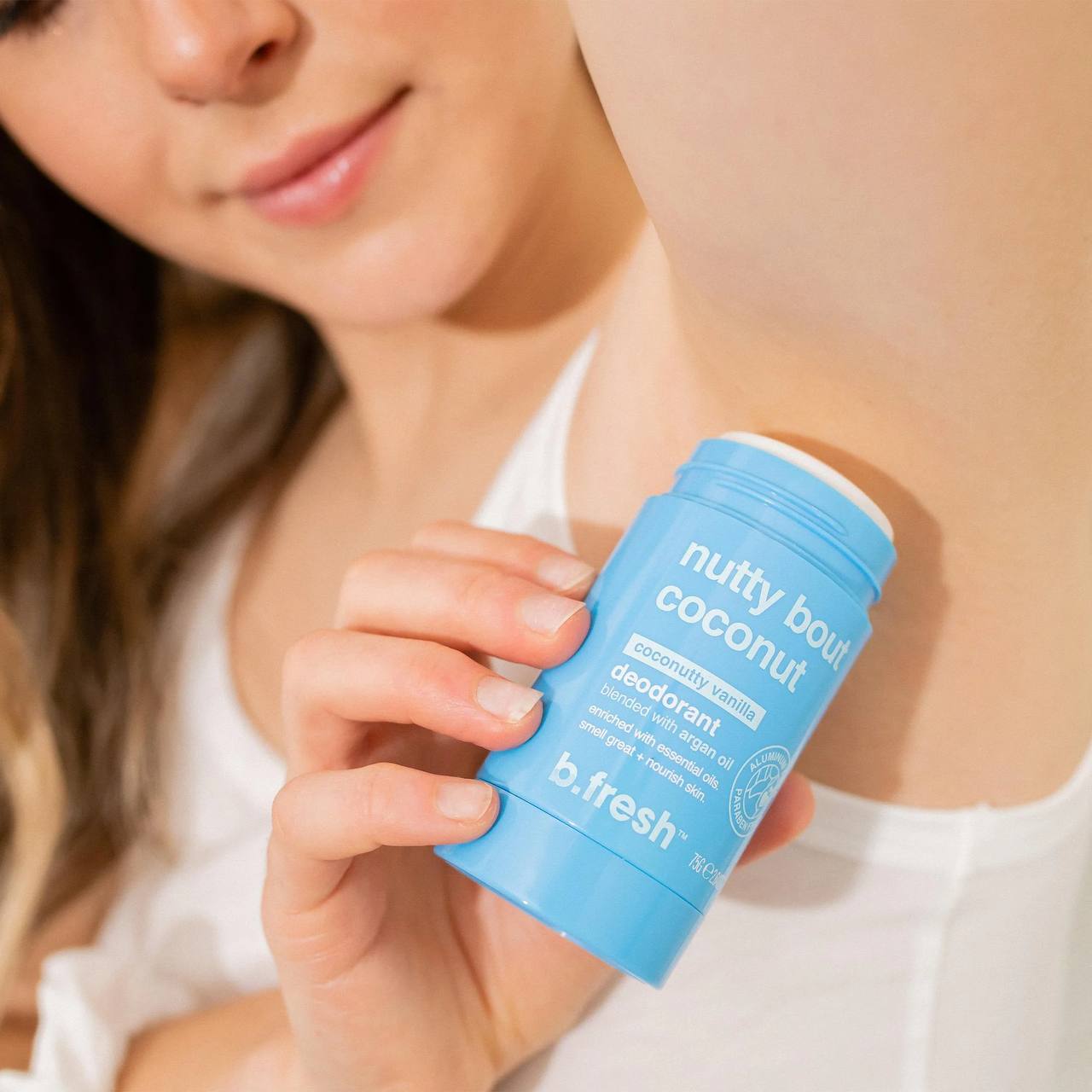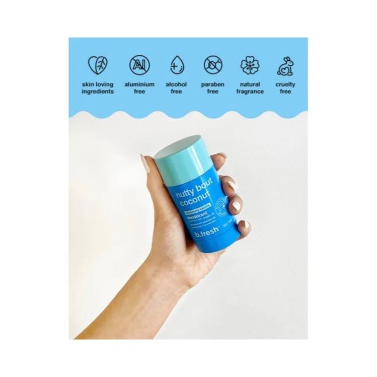 دئودورانت نارگیل b.fresh دارای اثر ضد تعریق طولانی مدت بوده و از تعریق و بوی نامطبوع بدن جلوگیری می‌کند بدون آکنه موجب مسدود شدن منافذ تنفسی پوست شود.