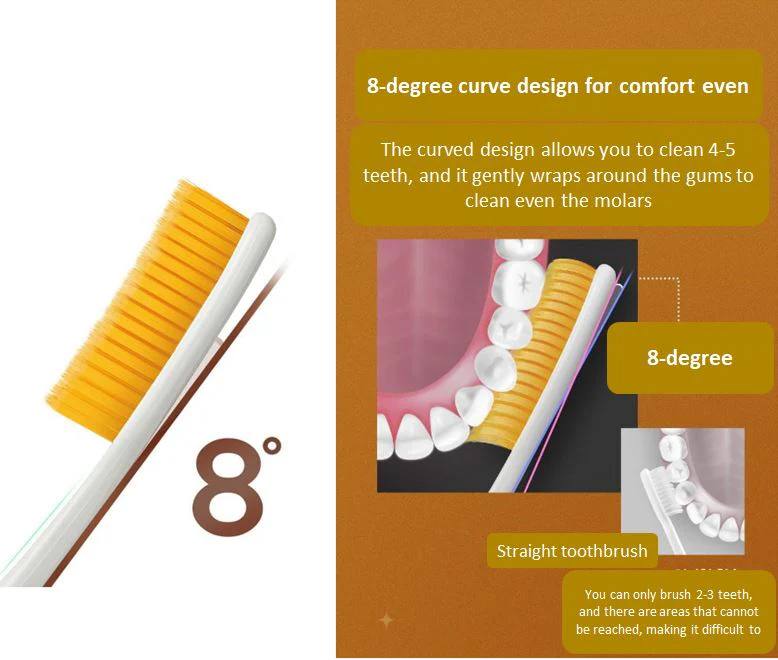 ۳. سری زاویه دار مسواک نرم وانگتا مدل طلایی برای پوشش بهتر