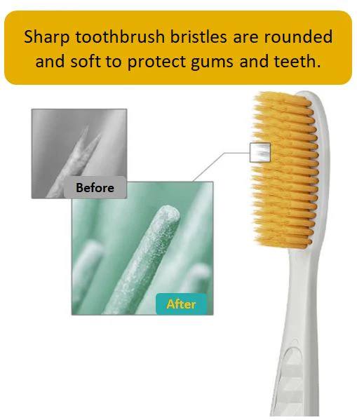 الیاف برس به صورت دو لایه طراحی شده اند: لایه بالایی با نوک گرد برای محافظت از مینای دندان و لثه و لایه پایینی با الیاف الاستیک برای نفوذ بهتر بین دندان ها و پاکسازی دقیق تر مواد غذایی و پلاک ها.