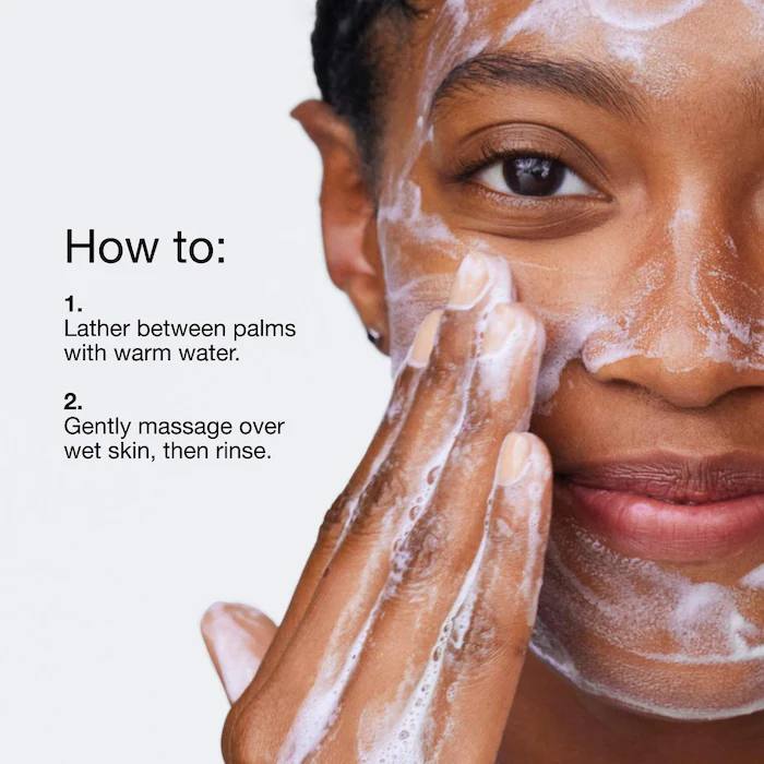 پوست رابا آب مرطوب کنید ومقداری ازین موس به سطح پوست کشیده تا این پاک کننده ظرف چند ثانیه شروع به پاک کردن آرایش، چربی اضافی، ضد آفتاب، کثیفی و آلودگی کند سپس کاملا ابکشی کنید.